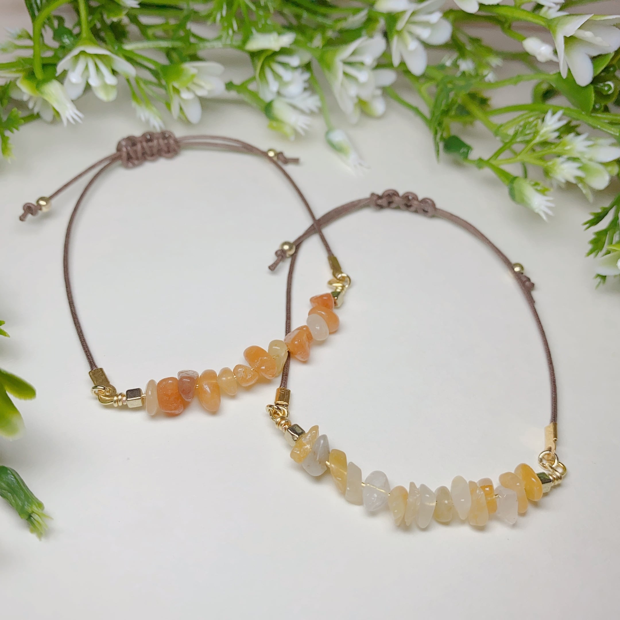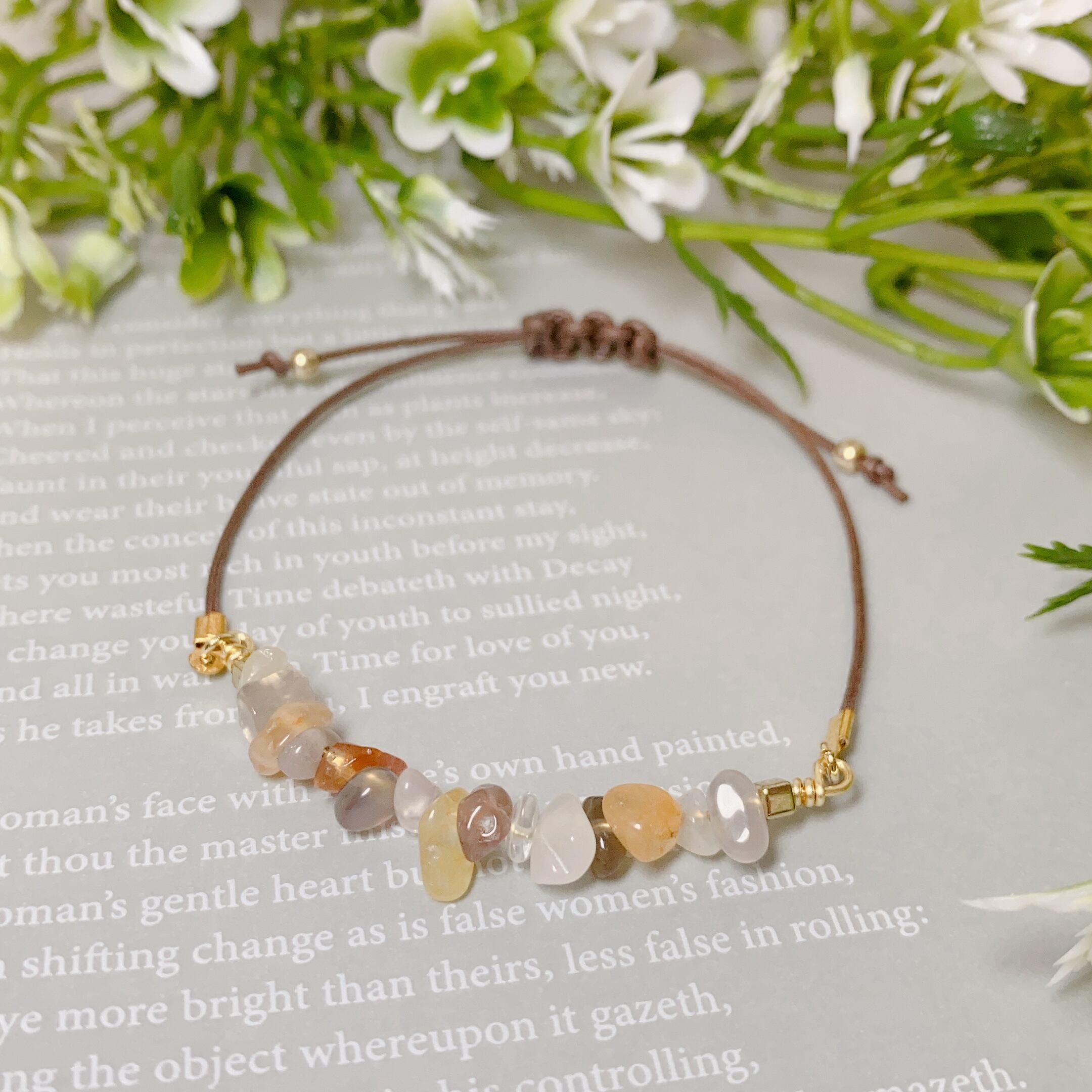 天然石「ルチルクォーツ」をミックスで使用したブレスレットです。