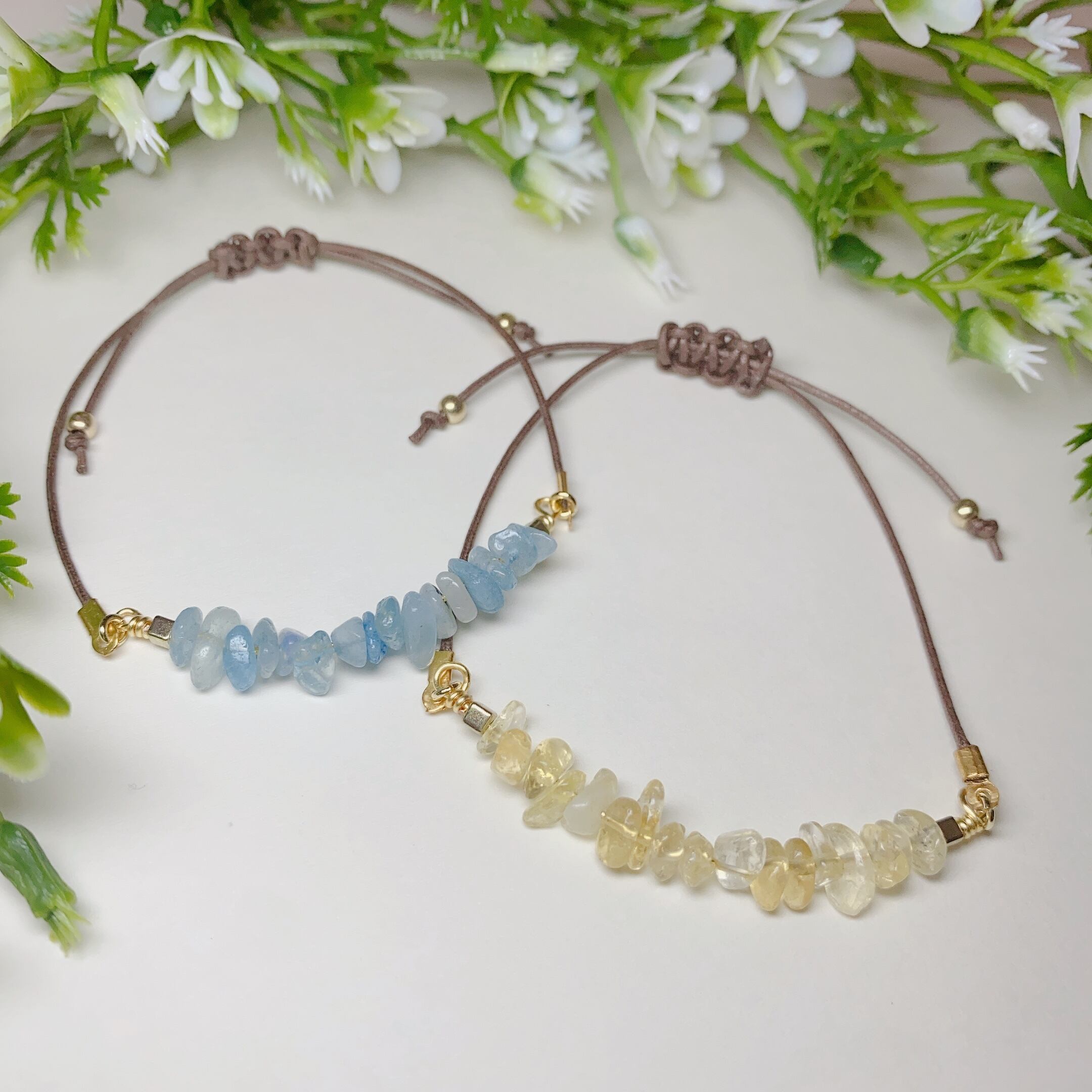 水や汗・アルコール等によって、石の色合いの変化や紐の劣化につながる恐れがあります。
