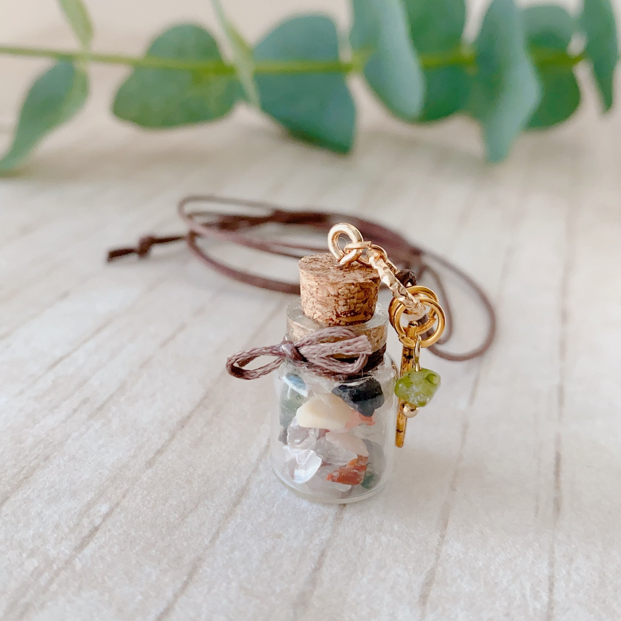 小粒なレッドアベンチュリンの天然石チャームがかわいらしさを引き立てます。