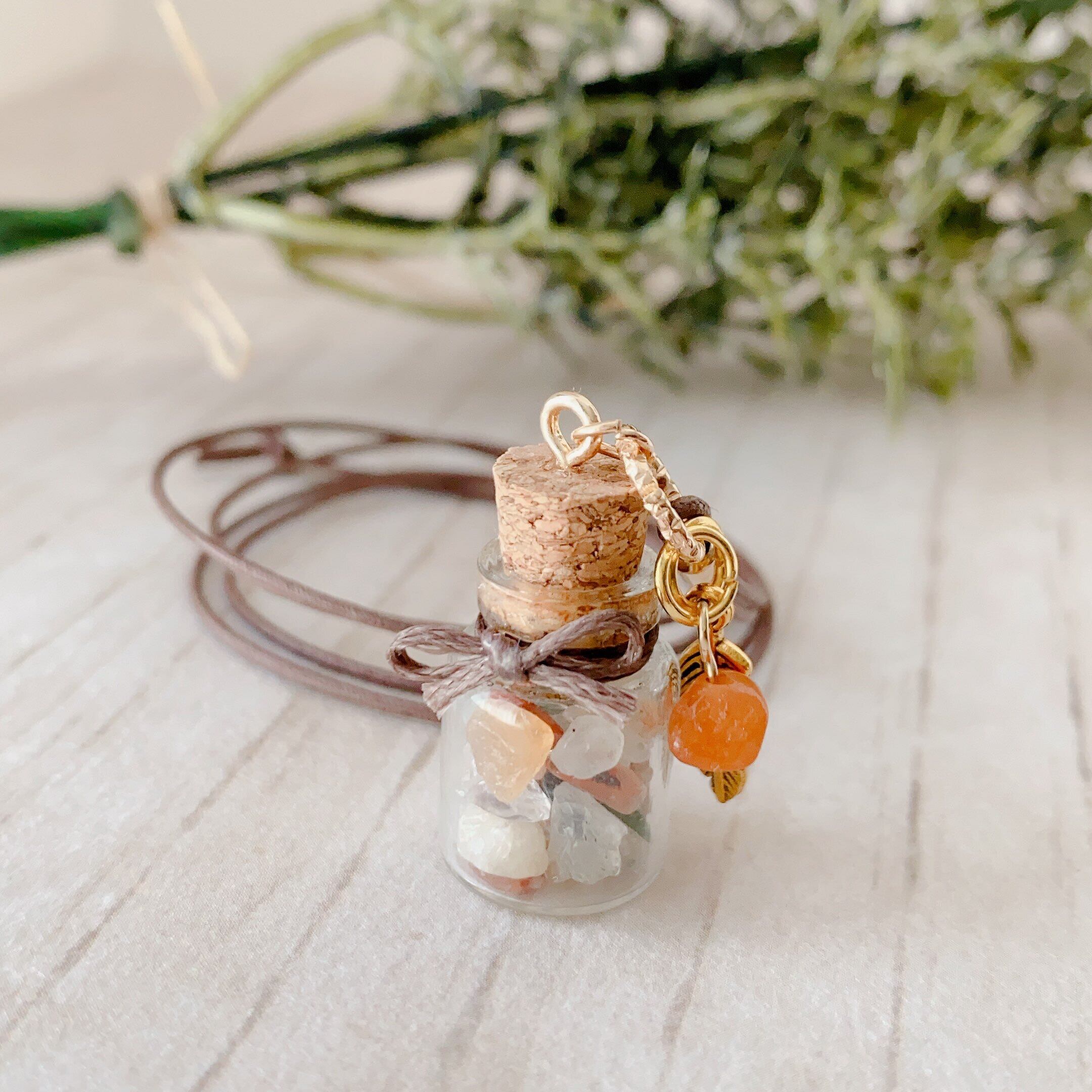 天然石を小さなボトルに閉じこめました。