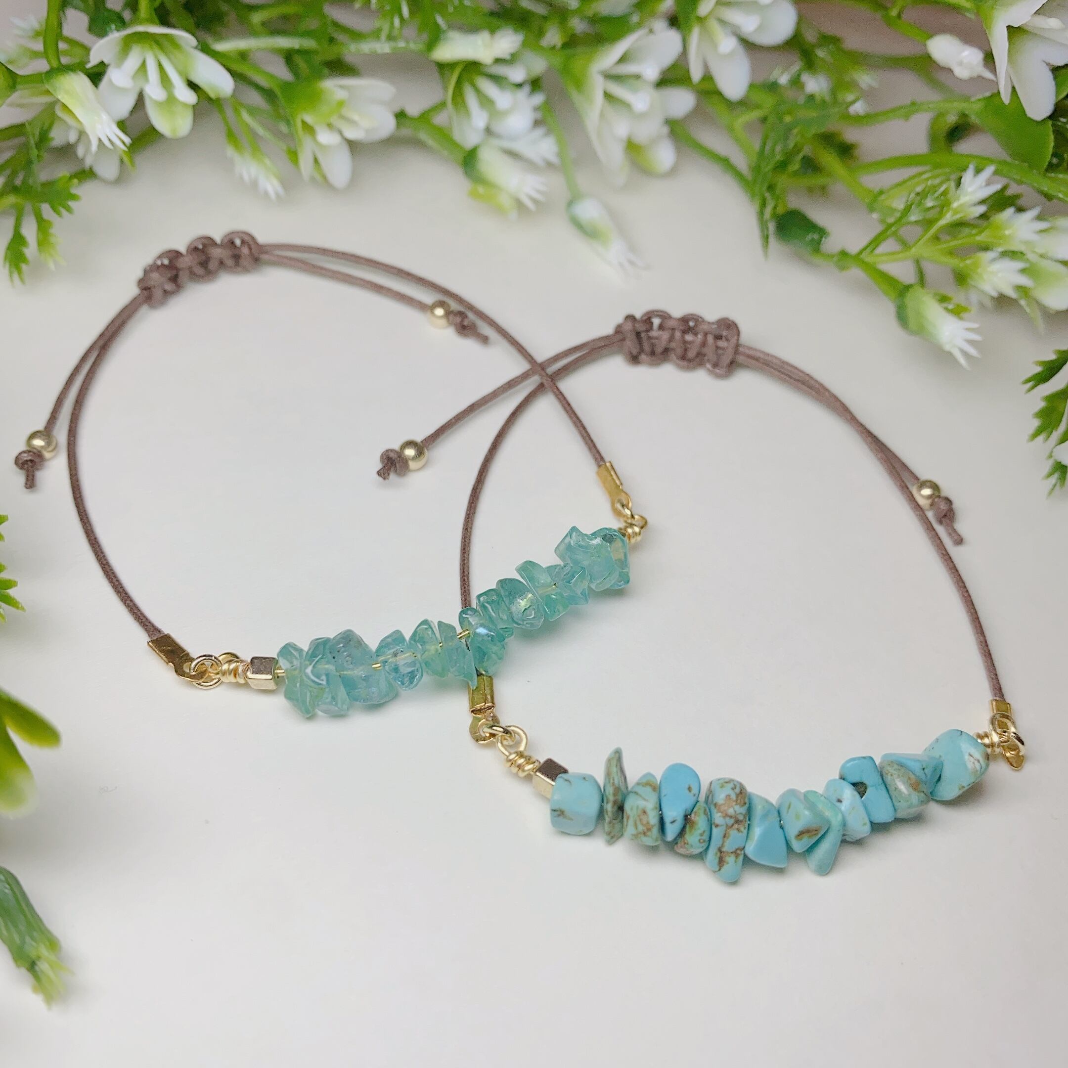 水や汗・アルコール等によって、石の色合いの変化や紐の劣化につながる恐れがあります。