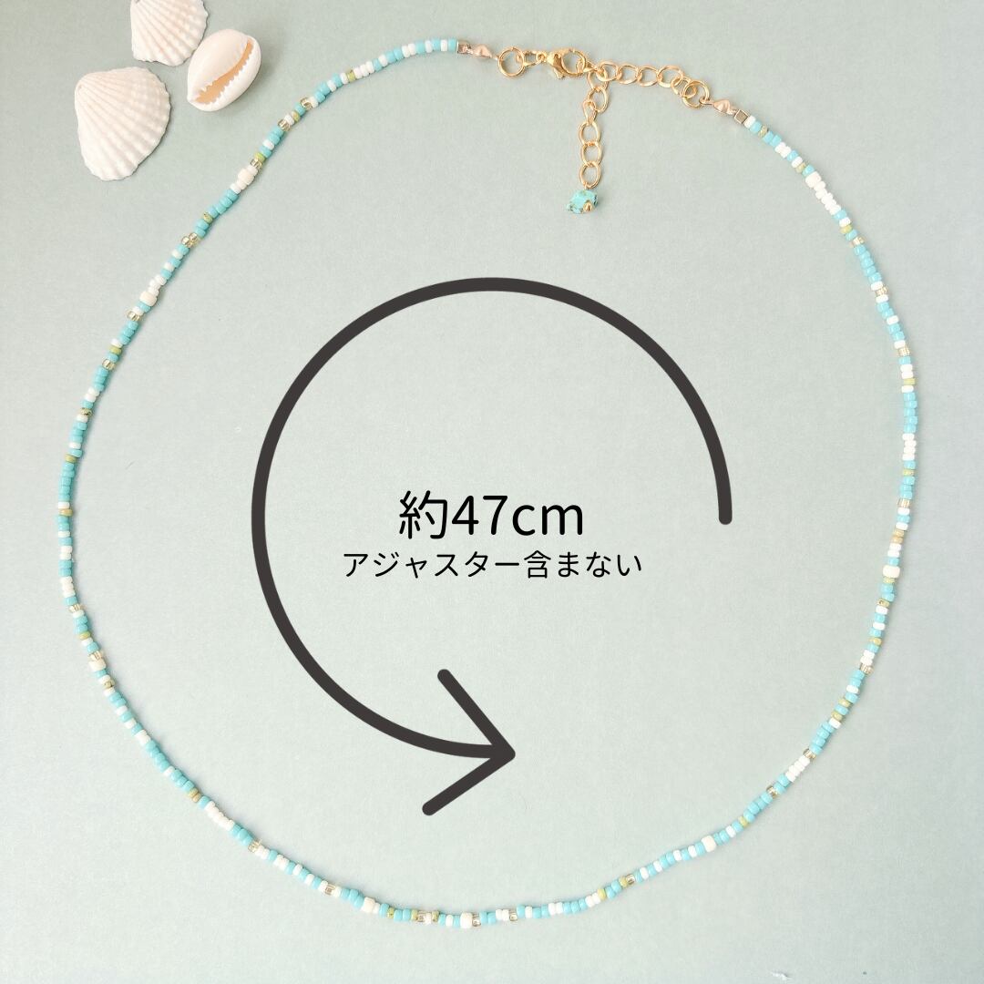 淡いブルーと白のビーズで波打ち際の砂浜と海の色を、