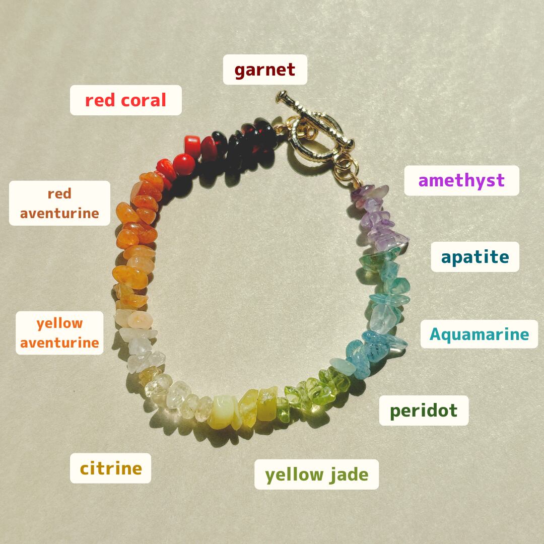 10種類の天然石を虹色にデザインしました。