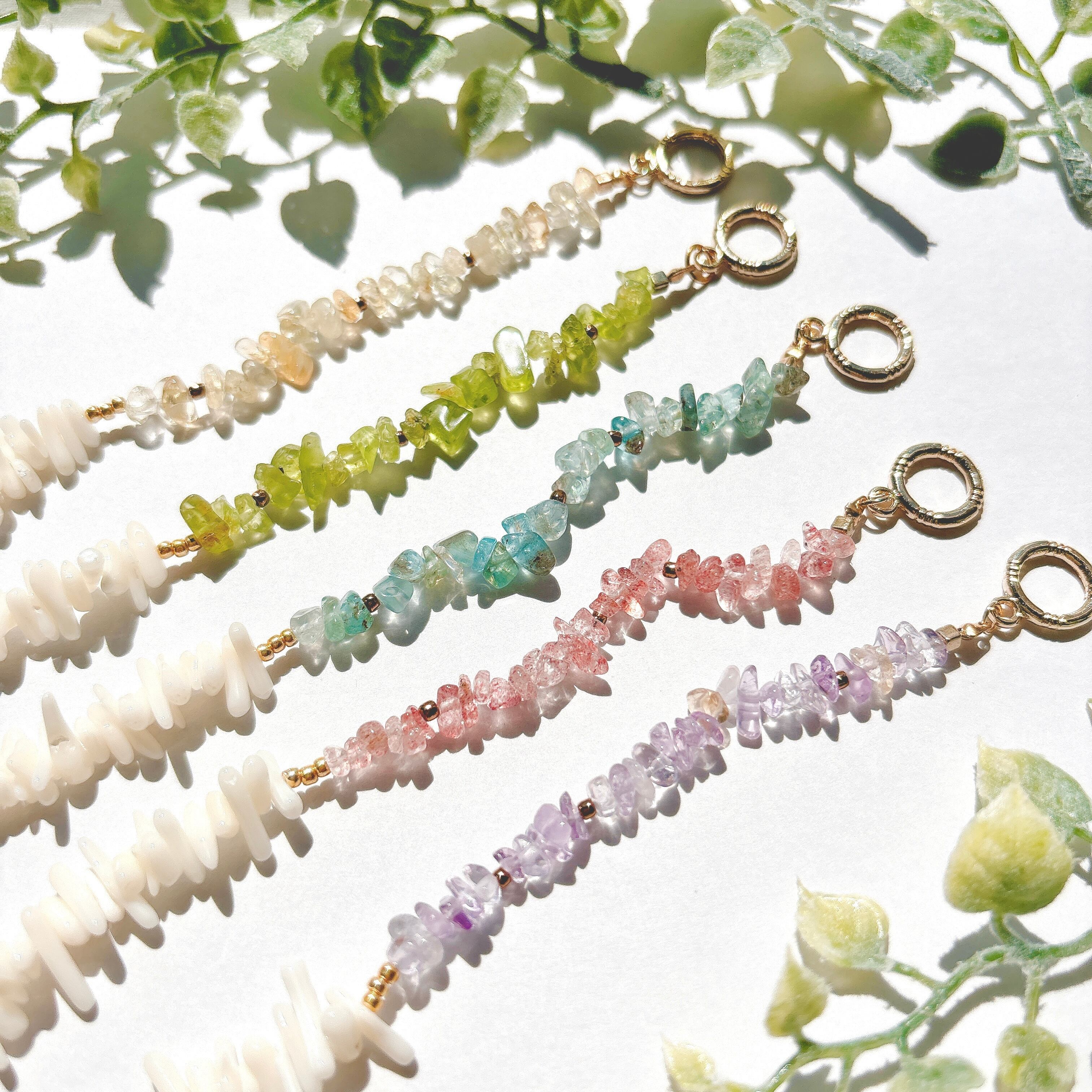 水や汗・アルコール等によって、石の色合いの変化や紐の劣化につながる恐れがあります。