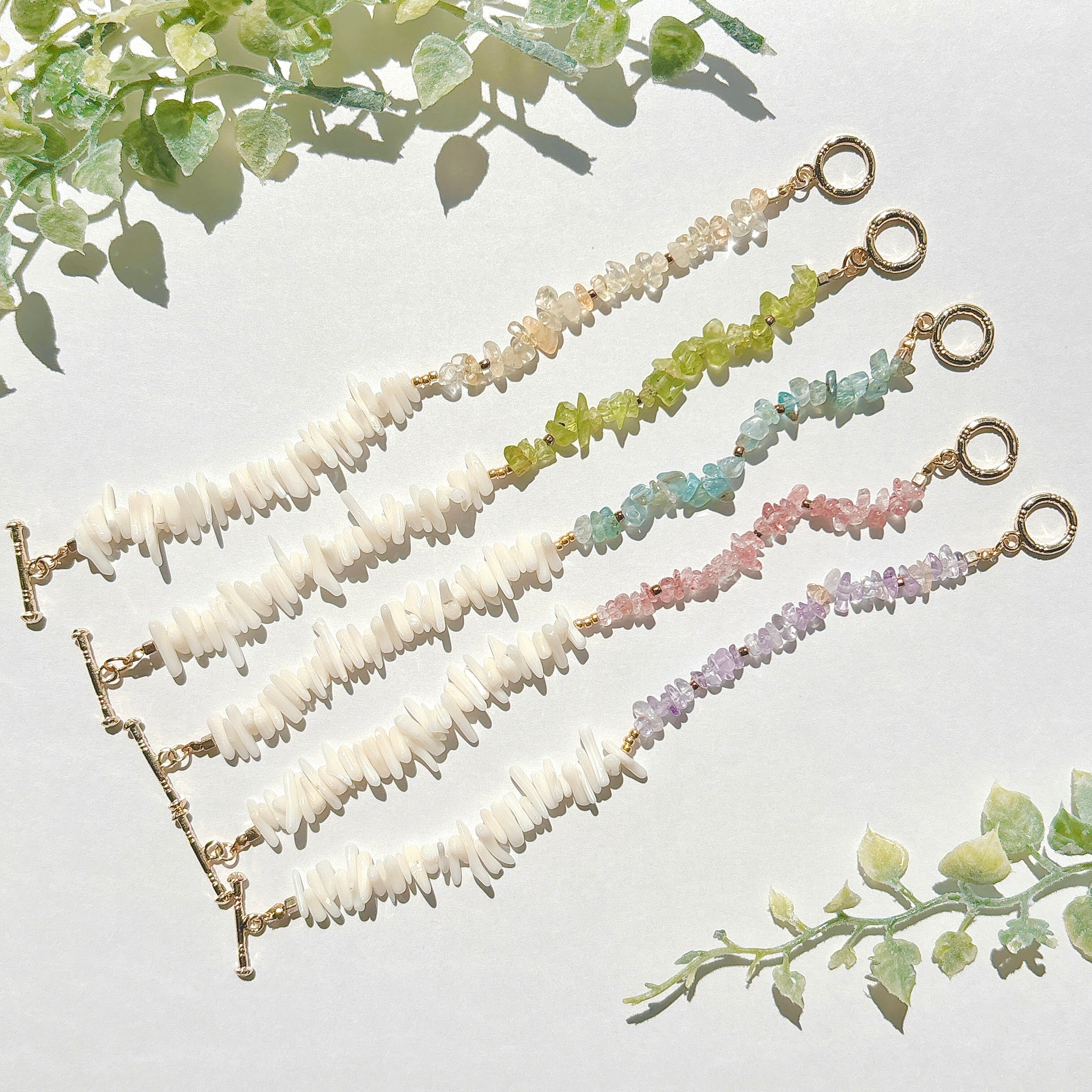 水や汗・アルコール等によって、石の色合いの変化や紐の劣化につながる恐れがあります。