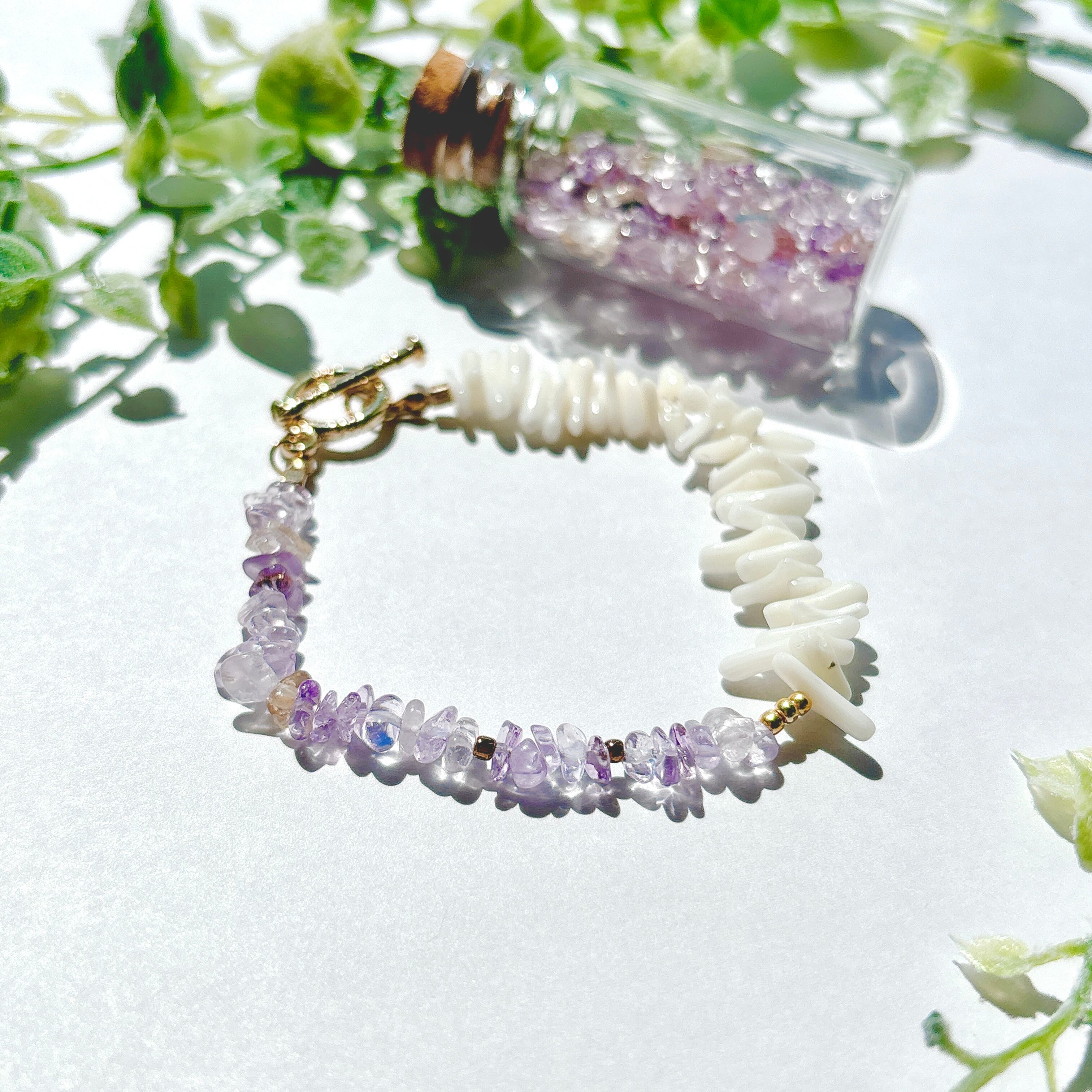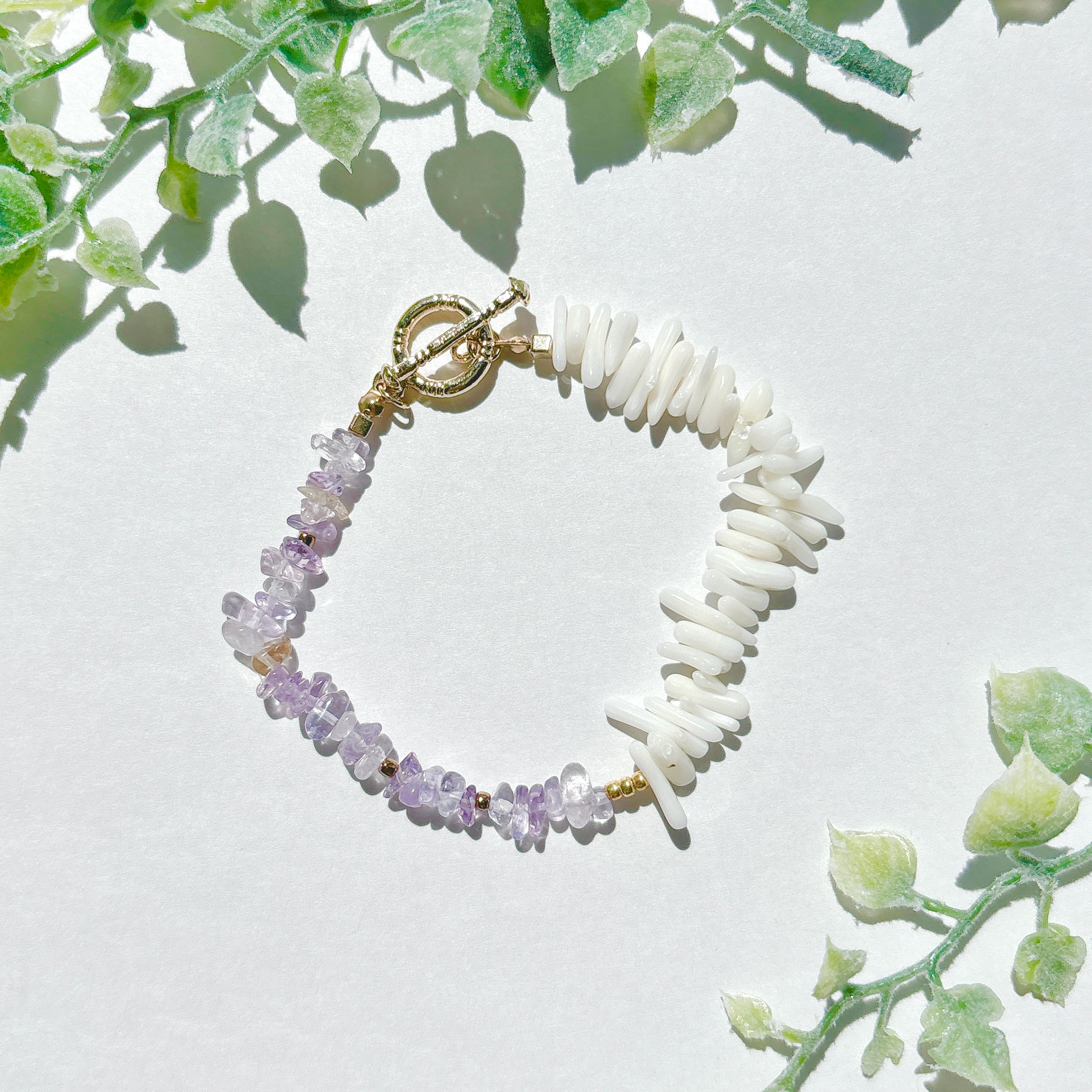 優しい色味のパープル&イエローがポイントカラーのアメトリンと